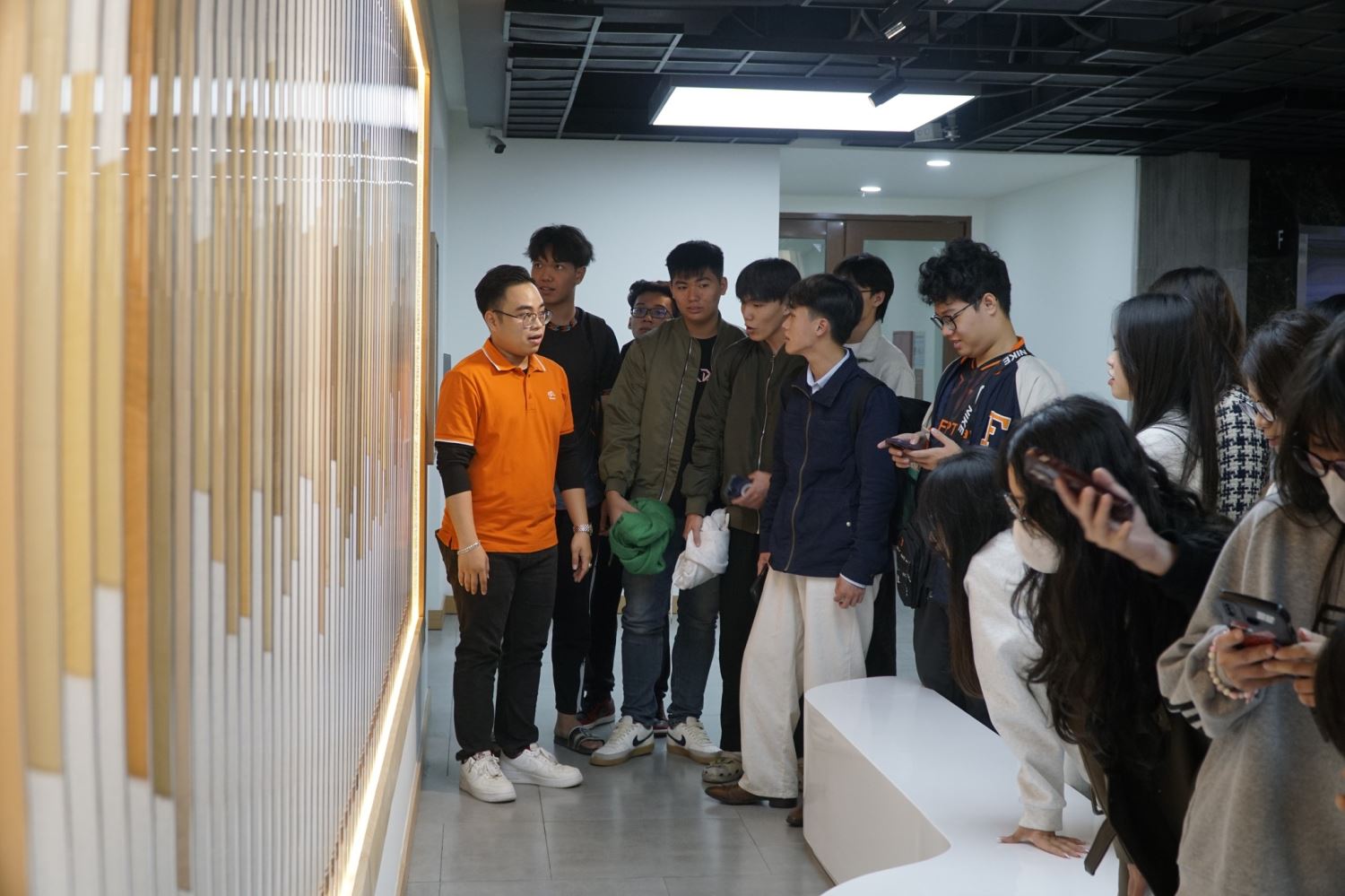 Kết thúc buổi tham quan, sinh viên được khám phá không gian làm việc sáng tạo, trẻ trung và đậm chất FPT - nơi tinh thần "Tôn trọng - Đổi mới - Đồng đội" được thể hiện rõ trong từng góc làm việc.