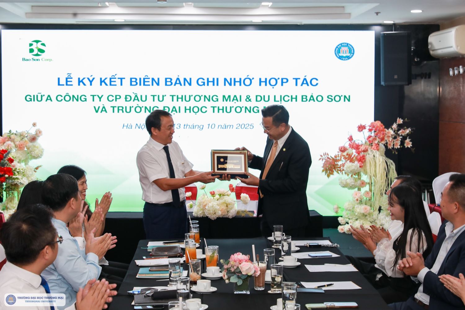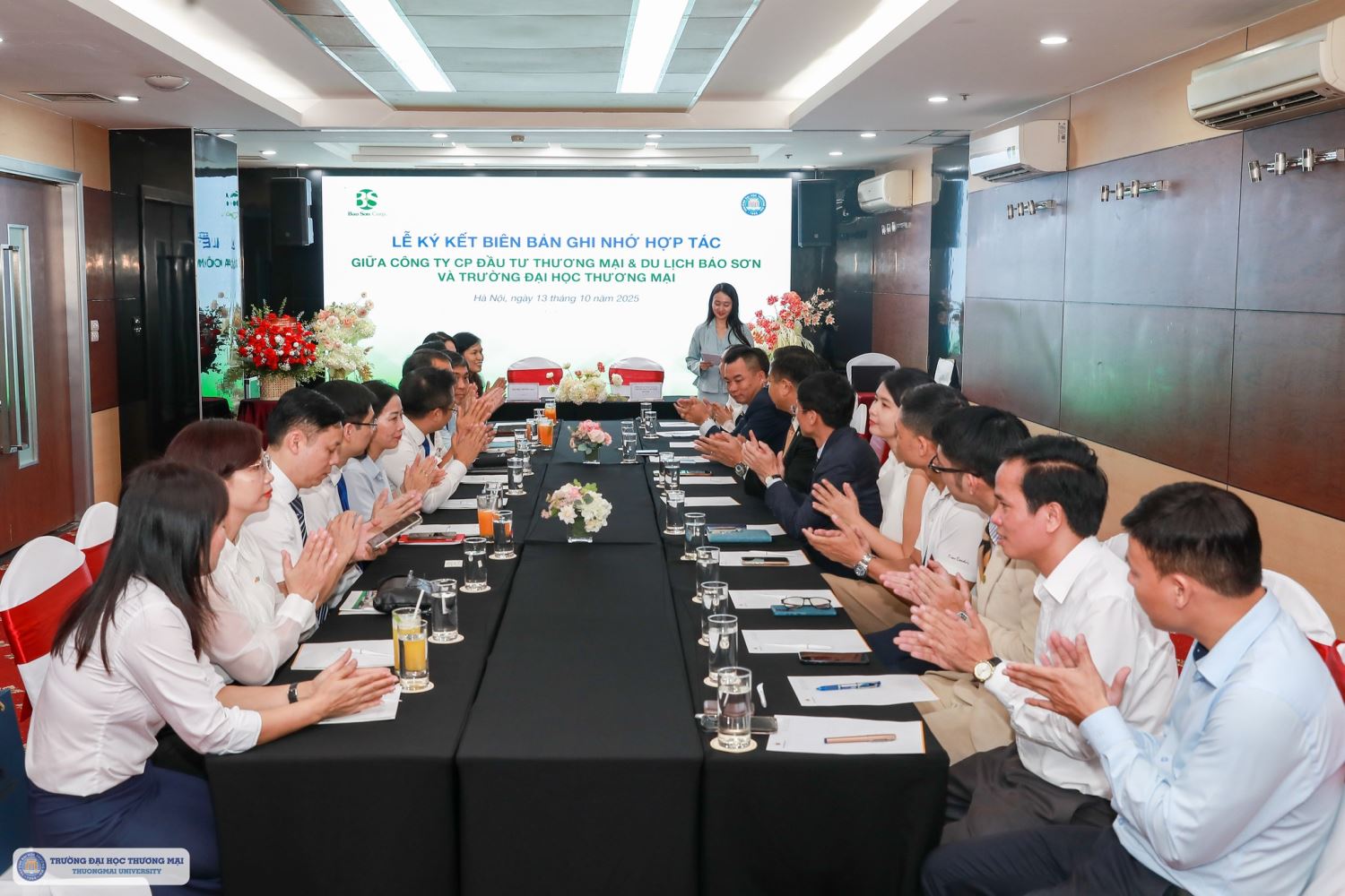 Chiều ngày 13/10/2025, tại Công ty Cổ phần Đầu tư Thương mại và Du lịch Bảo Sơn, Lễ Ký kết Biên bản ghi nhớ hợp tác giữa Trường Đại học Thương mại với Công ty Cổ phần Đầu tư Thương mại và Du lịch Bảo Sơn đã được long trọng tổ chức. Sự kiện này chính thức mở ra một hợp tác toàn diện và đầy hứa hẹn giữa hai đơn vị, hướng tới xây dựng một hệ sinh thái đa dạng và chất lượng, tập trung vào công tác đào tạo, bồi dưỡng và phát triển nguồn nhân lực có chất lượng cao, đóng góp cho sự phát triển kinh tế đất nước.