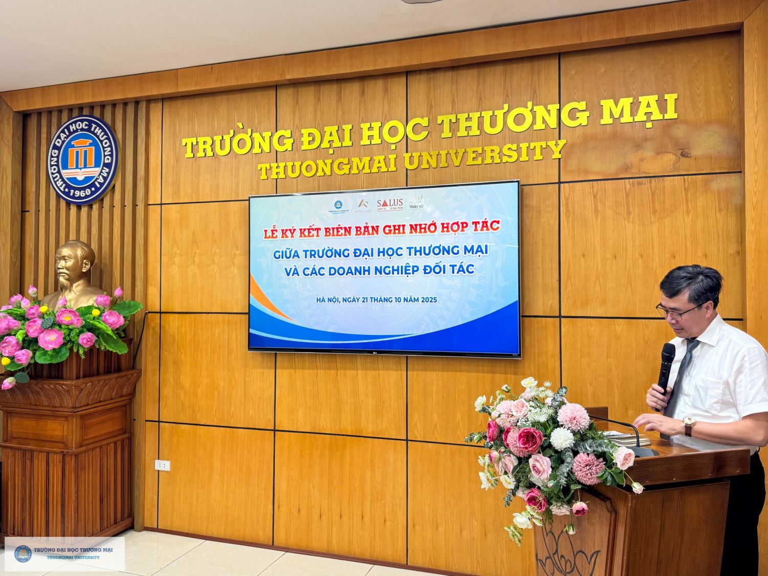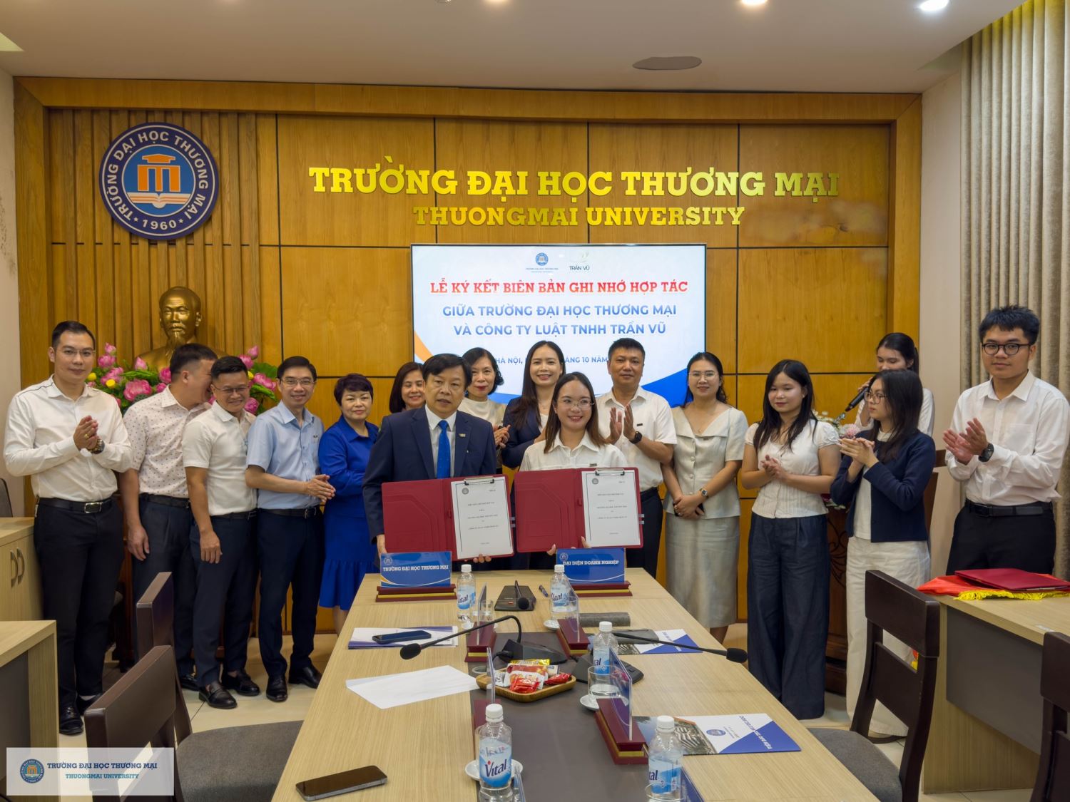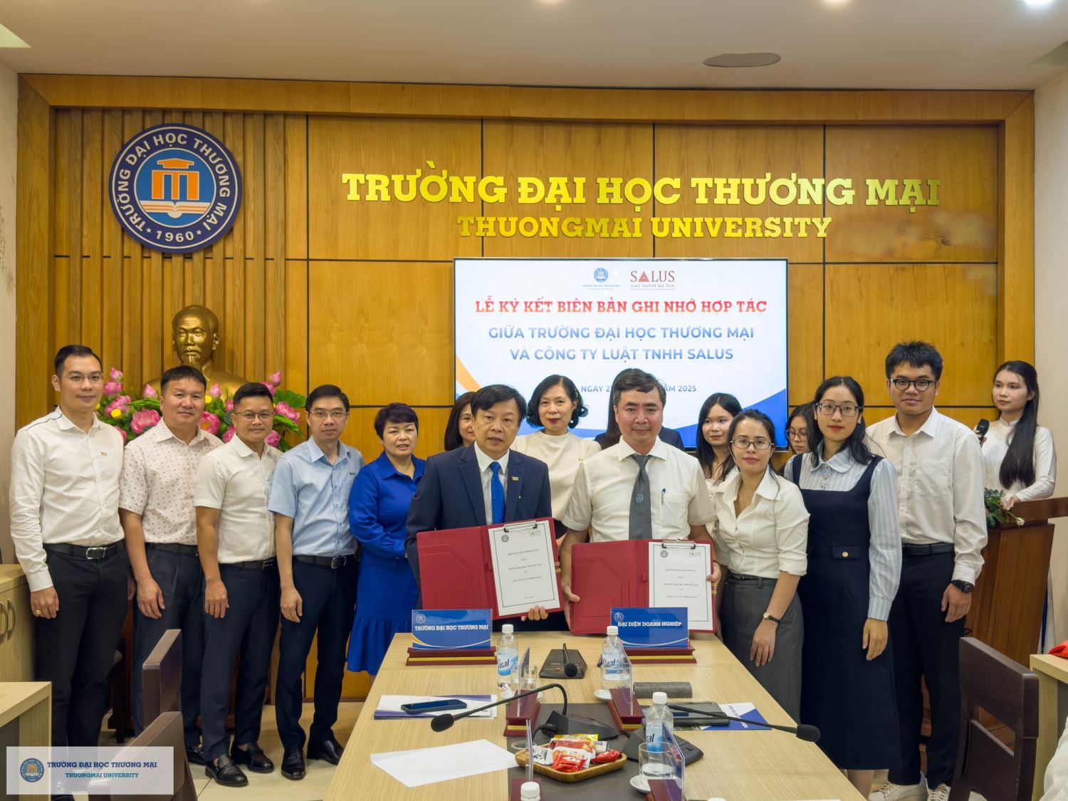 Vào sáng ngày 21/10/2025, Trường Đại học Thương mại đã tổ chức thành công Lễ ký Biên bản ghi nhớ hợp tác với Công ty Luật TNHH SALUS, Công ty Luật TNHH Trần Vũ và Công ty Luật TNHH APRA.