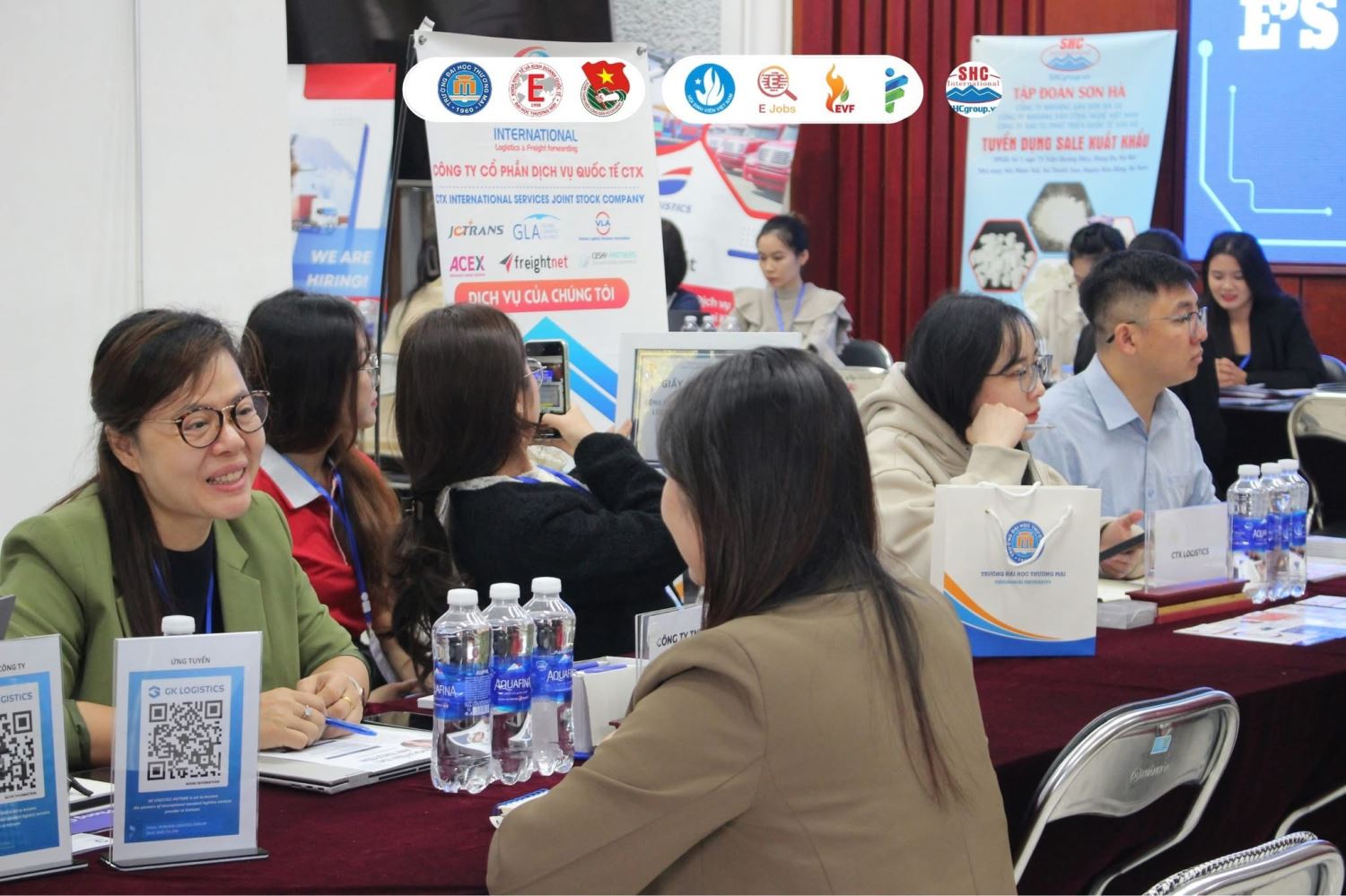 ✨ E's Jobs Fair 2024 đã mang đến cho các bạn sinh viên khoa Kinh tế và Kinh doanh quốc tế cơ hội được gặp gỡ, tiếp xúc và trao đổi với hàng loạt các doanh nghiệp có tiếng để trau dồi thêm cho mình kiến thức chuyên môn, kỹ năng mềm, cũng như tăng cơ hội việc làm cho sinh viên khi được phỏng vấn trực tiếp 1:1 với nhà tuyển dụng.