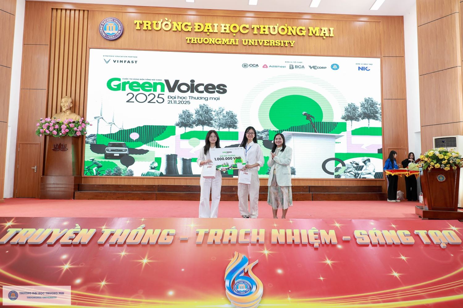 Trường Đại học Thương mại trở thành điểm dừng tiếp theo trong hành trình Green Voices 2025 - Chuỗi cuộc thi hùng biện dành cho sinh viên với mục tiêu truyền cảm hứng về lối sống xanh và chuyển đổi bền vững.